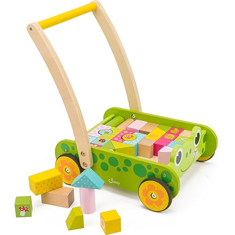 Cossy Wooden Baby Learning Walker Toddler Toys 1 Year Old Frog Blocks Roll Cart Push Pull Toy 34 Pcs