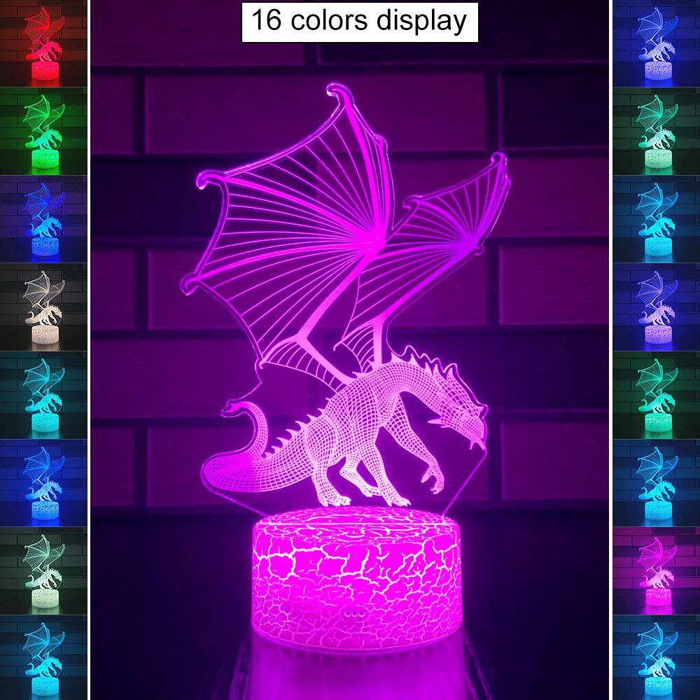 Setifuni Dragon Lamp Dragon Toys Night Light 16 Colors Changing 3d Optical Illusion Bedside Lamp Birthday Gifts For 3 4 5 6 Years Old Boys And Girls