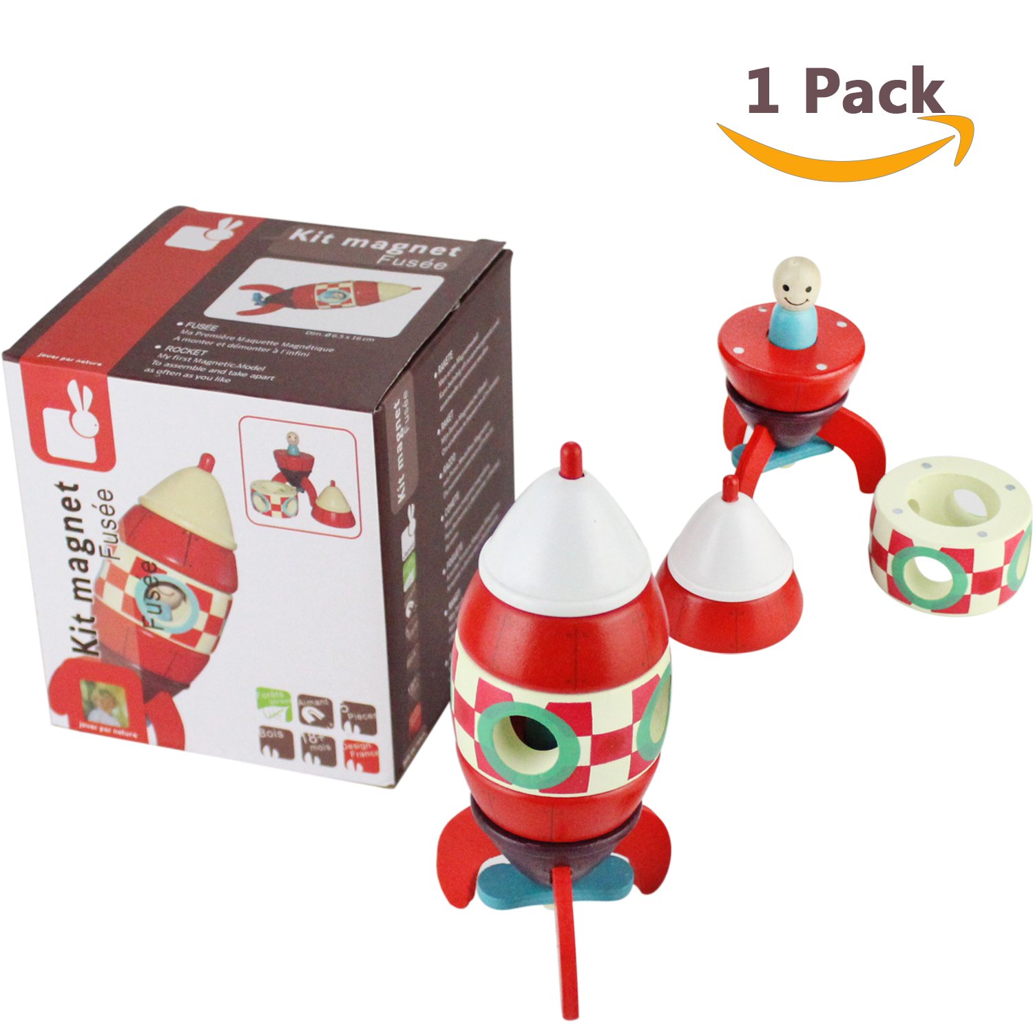 Sealive Magnetic Rocket Ship Toy Wooden Rocket Space Toys With A Astronaut Figure For Kids Toddlers Wood Rocketship Make And Break Magnetic Airplane