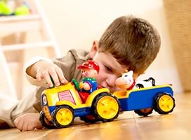 Only the highest grade materials are used in the quality controlled manufacturing process. Comes with first friends farmer and cow. Press the head of the farmer and watch teh tractor and trailer chug along.