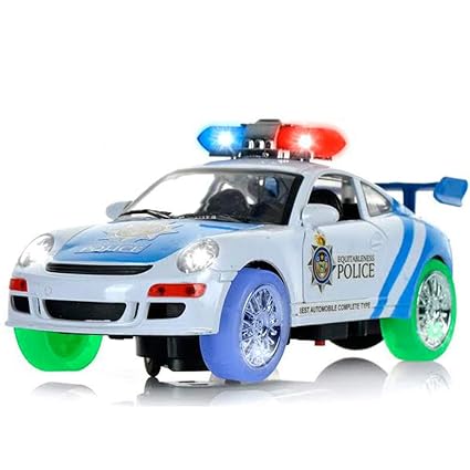 Funivo Bump N Go Flashing Police Car With 3d Flashing Lights And Sound Battery Operated Police Car Toy For Kids Batteries Not Included