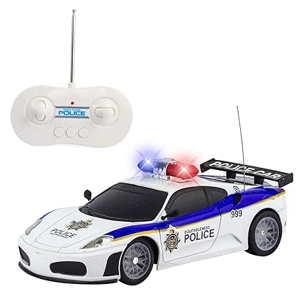 Justice Team Police Rc Police Car 1 20 Scale Full Function Remote Control Flashing Lights Siren Sounds Light Up Wheels