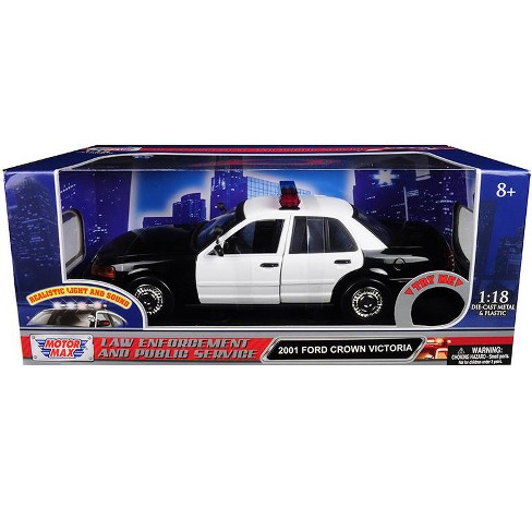2001 Ford Crown Victoria Police Car Black White W Flashing Light Bar Front Rear Lights Sound 1 18 By Motormax