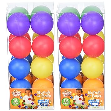 Bright starts having a ball giggables 1 to 3 years. Includes 16 multi colored character balls. Bright and colorful these balls are great for rolling chasing and tossing activites.
