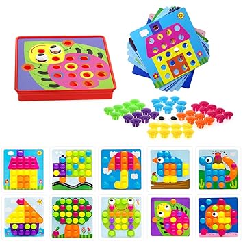 Soyee Button Art Early Learning Toys Color Matching Mosaic Pegboard Set For 3 Year Old Boys Girls Brain Training Games For Kids