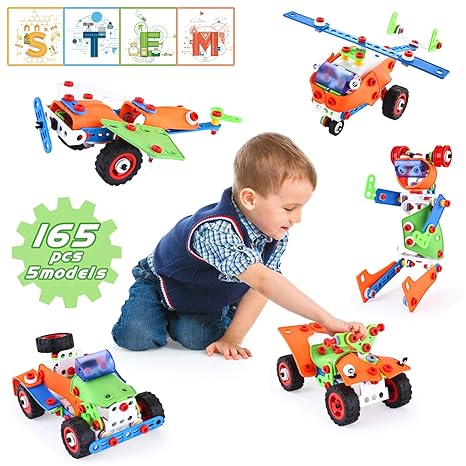 Lukat Stem Toys For Kids 165 Piece Educational Construction Building Toys Set For Ages 7 8 9 Years Old Boys Girls Best Kids Gift Toys
